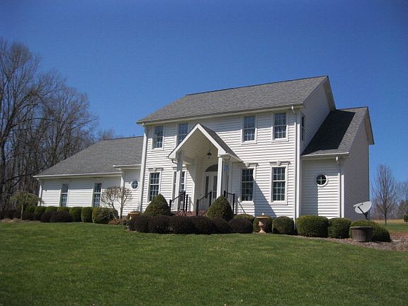 Amazing custom-built two-story colonial sitting on appx. 8 1/2 completely private acres. Superb condition, beautiful kitchen w/ granite, 10'ceilings in Great Room and MBR, custom Master Bath, lovely hardwood floors, sitting room/den off MBR, covered rear porch, two-car garage, separate one-car garage, full basement and breathtaking acreage. This is the property you've been searching for!