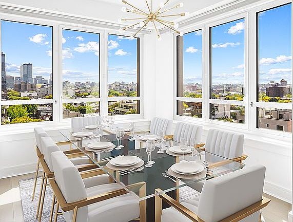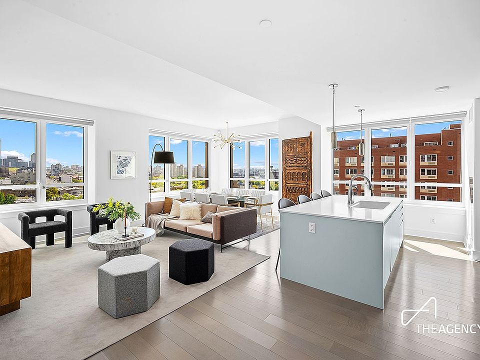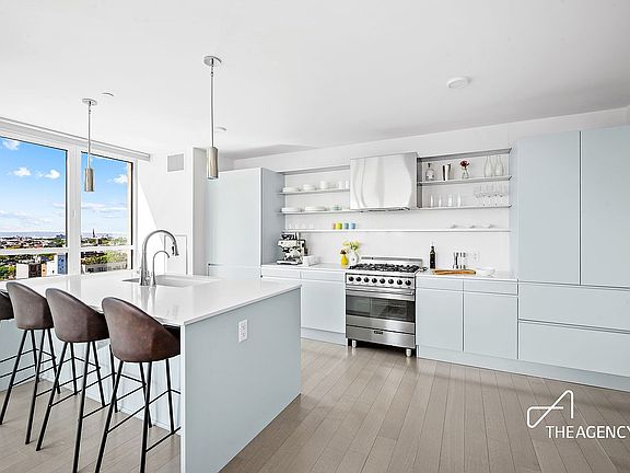 Located in the prime south-east corner of the condominium, this three bedroom, with approximately 1744sf is flooded with natural sunlight and incredible panoramic views, thanks to oversized windows and a thoughtfully designed open floor plan. A gracious entry foyer welcomes you into the home, which leads to an expansive living area overlooking historic downtown Brooklyn - the perfect respite from the busy streets of NYC. The gracious modern kitchen is a chef's dream, featuring an open kitchen concept with blue matte lacquer by Valcucine cabinets, white Silestone Quartz cabinets, and top of the line appliances including a SMEG oven/stove and dishwasher, Liebherr fridge and porcelain by Kohler sink.