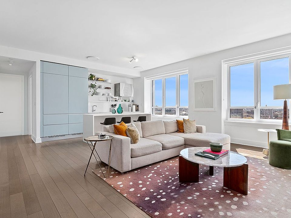All the residences in The Boerum feature white oak floors, central air, and LG washers and fully-vented dryers. Residents have access to extensive amenities, including a state-of-the-art fitness center, lounge, library, playroom, and 15th floor landscaped terrace with outdoor kitchen, lawn, and south-facing sun deck.