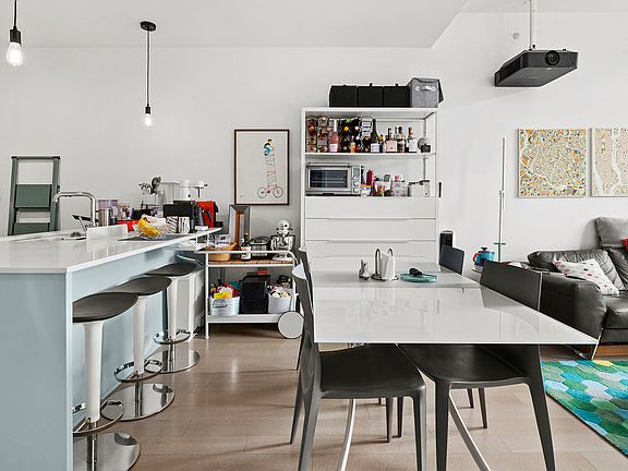 THE APARTMENT: The kitchen is finished in matte lacquer cabinetry by Valcucine (Italy), Silestone quartz counters, and fully integrated Smeg and Liebherr appliances. The apartment has light oak floors throughout, central air, and LG washer/dryer.