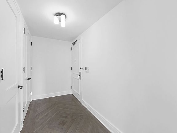 Positioned adjacent to each other, the two bedrooms of the residence ensure privacy for the master suite. This master suite boasts a generously proportioned walk-in closet and a master bathroom adorned with heated Calacatta white marble floors, Ferrara marble countertops, a double vanity featuring Kohler sinks, and Watermark fixtures in an appealing gunmetal finish. Throughout the residence, pristine white oak floors grace the space, complemented by central air conditioning and LG washers, and fully-vented dryers.