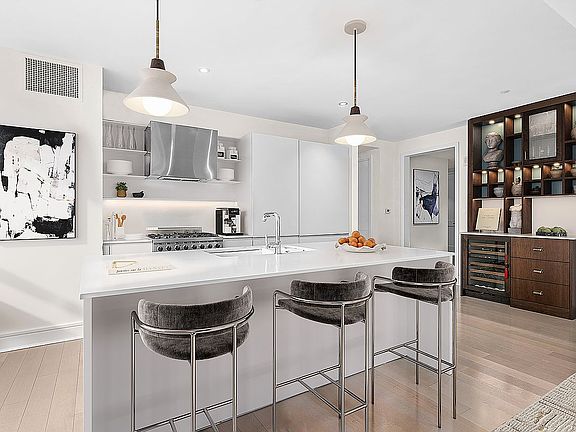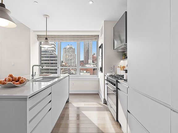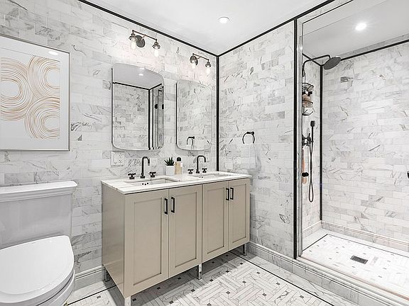 Beautiful 907 set in the northwest corner of the full-service Boerum condominium receives abundant light through massive windows and enjoys open views of the Downtown Brooklyn skyline. The gorgeous 3 bedroom, 2.5 bath is the largest of the building’s 3-bedroom residences boasting 1,765 square feet of impeccably-designed living space. A formal entry foyer with a large storage closet, powder room and ample wall space for art welcomes your arrival. Beyond await luxurious interiors featuring white oak wood floors, chic lighting and refined finishes throughout. Relax and entertain in the sun-bathed corner living room brightened by walls of glass, with a gracious open layout for dining. Prepare meals in the fabulous open Valcucine kitchen presenting a large island with breakfast bar, silestone quartz counters, sleek white cabinetry and premium stainless steel appliances for the chef. Unwind in your west-facing primary bedroom suite, a tranquil oasis complete with 2 walk-in closets and a stunning spa bathroom adorned with heated Calacatta marble floors, dual vanities with porcelain sinks, custom Watermark fittings in a gunmetal finish, and an oversized shower. The second bedroom also has a walk-in closet, and the third sits privately off the living area, ready to serve as sleeping quarters or a den/office. Additional highlights include an LG washer and fully-vented dryer, and central air conditioning. Built in 2017, the magnificent 20-story Boerum condominium at 265 State Street is a sought-after living destination in prime Boerum Hill with a generous array of upscale amenities. These include 24-hour doormen, a state-of-the-art fitness room, lounge, library, catering kitchen, media area, laundry facility, children’s playroom, package room, cold storage and bike room. Perched on the 15th floor is a wonderful landscaped terrace with an outdoor kitchen, lawn, and south-facing sun deck for lounging. Onsite storage and parking are also available for separate fee. Best of all is the vibrant location accessing all the offerings of nearby Brooklyn Heights, Cobble Hill and Downtown Brooklyn. The building is minutes away from a wide variety of great shops, restaurants and conveniences; plus you’re close Smith St and Court St which are a main thoroughfare for restaurants and shopping. Many subway lines like the 2/3, 4/5, A/C, F/G and R are just steps away.