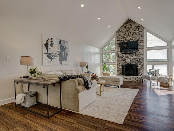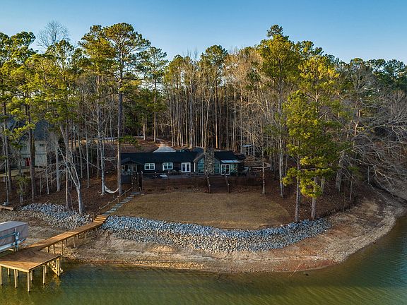 Stylish and well-appointed FULLY FURNISHED 4 bed, 3 bath home nestled on a 1.2 acre lot in the heart of the southwest side of Lake Martin. This is single-level living at its finest with gorgeous views and clean water. An expansive porch extends the entire length of the home with a custom stone paver path to the private pier. Enjoy sparkling water views from every room. The great room features a cathedral ceiling and floor-to-ceiling fireplace flanked by sun-filled windows. Continue into the fully updated kitchen with quartz countertops, stainless appliances and an apron front sink. Two primary suites, one with a sunroom and the other with access to the screened porch, offer excellent privacy! Updated baths, a laundry area, breakfast nook and dining area add the finishing touch!