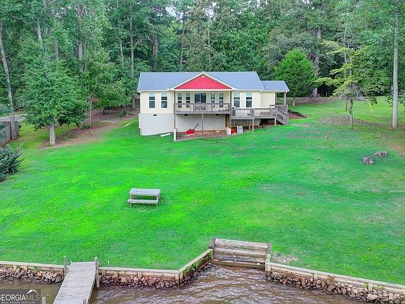 Don't Miss This Fantastic Lakefront Home on over 1/2 an Acre Deeded Level Lot w/ Approx 170' of Frontage on Jackson Lake * Completely Open & Spacious Floor Plan is Perfect for Entertaining & Having All the Family at the Lake * Bright White Kitchen Features Upgraded Granite Countertops, Tile Backsplash, Large Island w/ Breakfast Bar & Recessed Lighting * The Main Living Area Boasts High Ceilings & Views of the Lake from All Angles * Luxury Vinyl Plank Flooring Throughout * Split Bedroom Floor Plan * In Addition the Baths are Upgraded w/ Granite Countertops * As You Walk Out Onto the Covered Back Deck You Are in Awe of the Lake Views & Proximity to the Lake * This Level Lot Makes Walking to the Dock an Easy Stroll & is a Rare Find * RV Hook Up Located Near the Driveway * Low Maintenance Vinyl Insulated Windows, Metal Roof & Hardie Board & Batten Siding * Sea Wall & Platform Dock in Place!!