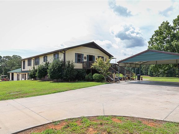 Check out this unique property! The home has 4 bedrooms and 2 baths upstairs with 9.62 acres of unrestricted pristine pastureland that would be perfect for a horse or cattle farm. It also features exterior handicap access via wheelchair lift from the detached carport up the staircase to the house. A beautiful 1.5 acre pond behind the home is stocked with bass, bream, and catfish. Gorgeous oak hardwoods were installed throughout in 2009. The house also features a whole house water purifier system. There is a separate septic tank located near the detached barn/shed that can be used for an RV. The barn/shed is built to withstand 200mph winds, has a concrete foundation that is as thick as 6" in some places, includes a 200amp power box, and measures 54' deep by 30' wide. The garage shop features a half bath, office space, 4 bay doors, a grease pit, a hard-piped commercial air compressor, sturdy industrial shelves, and plenty of room to park multiple cars. It also has a 3 phase electrical panel and a single-phase panel. The lower level of this property was once home to Gene Rochester's Alternators and Starters Shop. Options for this property are endless...business, farm, fish pond business, campground, and a residential home all in one!