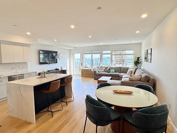 Gorgeous harbor view 2bed 2bath penthouse available! Experience this one-of-a-kind condo in top location Jeffries Point with unobstructed Boston skyline and harbor views from this double-decker home. Each level of living provides private decks large bedrooms and oversized bathrooms with ample natural light and white oak flooring throughout. Private stairwell from second floor leads up to the enormous quartz/stainless chef's kitchen and open living room with a walkout deck. Upper level offers a larger bedroom and bathroom including a luxury tub for enjoying harbor sunsets, as well as a second living room, walk in closet and roof deck. Unit features on demand hot water, central AC/heat, private washer/dryer. Less than a block from the marina, and proximity to Piers Park, new waterfront, restaurants, shopping, MBTA blue line Maverick Square, walk paths, parks. Resident street parking. Owner pays water. Tenant pays gas/electric. First month, security deposit, broker fee due at signing. Renter insurance required. Pets negotiable.
