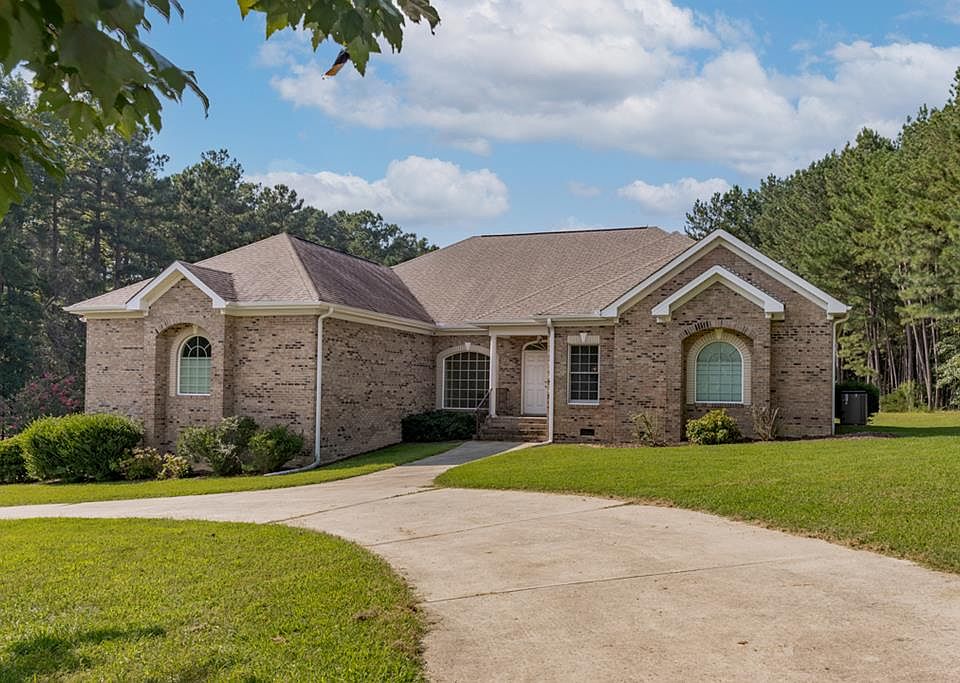 DON'T MISS THIS SPACIOUS, BRICK RANCHER with additional lower-level bonus & bath on 3.4 ACRES is upscale subdivision less then ten minutes from I-85 and town. Hardwood floors throughout living areas & bedrooms. Nine-ft ceilings on main level. 4 BR's, 3.5baths with split-BR design. Oversized garage. Bonus room has wood stove heat (no AC). Expansive rear porch. Circle drive and add'l parking.