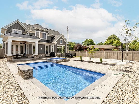 This exquisite custom built 4 + 1 bedroom 4.5 bath home in Oakville boasts an array of features designed to elevate your living experience. You're greeted by a spacious interior complemented by hardwood flooring T/O the main &upper floors, providing both elegance & durability. The kitchen features a large island equipped w/top-of-the-line appliances, including Jennair fridge & stove, a Bosch dishwasher & a Samsung laundry set. Enjoy an immersive cinematic experience in the home theatre, featuring eight A1-grade Italian leather seats for ultimate comfort. Built-in speakers in both the main floor & basement allow you to immerse yourself in sound T/O the home. Step into the backyard oasis, complete with a Latham pool fiberglass pool (14x30) and spa (7.9x7.9), providing the perfect setting for leisurely swims & tranquil moments. Additionally, enjoy the covered porch & basketball court, offering endless outdoor enjoyment. The walk-up basement features a wet bar, gym room, & a cozy bedroom, providing versatile spaces for various activities & accommodations. 3 gas F/P's spread warmth & ambiance/O the home, while skylights invite natural light to illuminate the space. With meticulous attention to detail, this home has been freshly painted. Plus, with recent additions including the pool (built in 2023) & the fully legal basement (approved in 2022), you can enjoy peace of mind &modern amenities. Situated on a spacious corner lot measuring 60x141.50, this property offers both privacy & ample outdoor space for recreation & relaxation.
