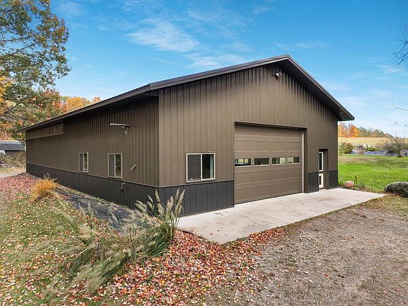 Discover the perfect blend of Northwoods charm & modern convenience in this stunning 2005 Chalet-style home; nestled on 20.2 private acres! You’ll find this hidden oasis just outside of town, tucked back off the road, hiding among the trees with unparallel privacy! The home features vaulted ceilings, floor-to-ceiling windows, & an open-concept layout, perfect for soaking in the natural light, wildlife, & picturesque views. Enjoy the warmth of wood-burning fireplaces on both the main & lower levels, while oversized rooms throughout the house provide ample space for comfort & relaxation. With a main-level laundry & a walk-out basement, this home offers both practicality & convenience. Step outside to explore the sprawling property, complete with raised gardens, a fully-operational chicken coop, & a massive 70'x35' pole building. This outbuilding includes a 30'x35' heated & insulated section, ideal for year-round use. Plus, you're just minutes away from lakes & public water access!