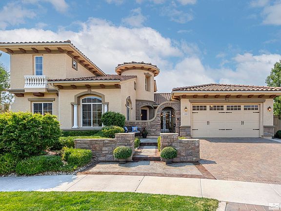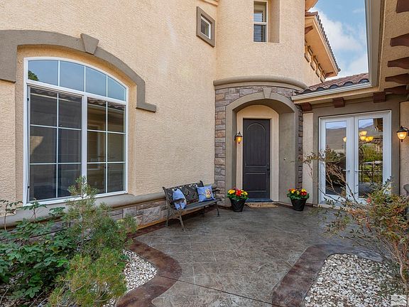 Experience luxury in this model home located in the prestigious Estates at Saddle Ridge, where no detail was overlooked. This stunning property blends elegance and functionality, featuring stone-accented walls, custom-designed closets, and a beautifully organized pantry. Premium finishes and upgrades are found throughout the home, including custom cabinetry in every room. Four sets of French doors lead to various outdoor retreats, creating a seamless indoor-outdoor living experience., Don’t miss the exquisite details in this home, from the elegantly designed wrought iron staircase and custom chandeliers, to the built-in features and surround sound inside and out. This 4-bedroom, 5-bathroom gem includes a private wing perfect for guests or in-law quarters, plus an office and a versatile library or extra sitting room. Ideal for indoor/outdoor living, you’ll love the outdoor fireplace, two pergolas, and lush lawn, perfect for entertaining and your furry friends. Situated on nearly half an acre, this rare oversized lot in Damonte Ranch feels like your own private park!