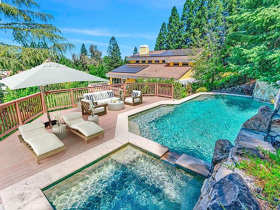 Gated Estate on over 1.25 acres within Diablo Country Club just on the border of Danville, just minutes to Alamo & Blackhawk. This stunning open concept 6 Bed, 4 Bath, 5200 sq ft House, plus has a 500 sq ft Cottage/Studio. Breathtaking Sunset Views from the multiple areas of the property. The gourmet kitchen has been updated & features a large island, breakfast bar, & opens up to the expansive great room plus there is large butler's pantry. The spacious open great room is perfect for entertaining, with an abundance of windows that provide natural light & showcase the surrounding views. Large bonus 6th bedroom guest suite, w/Full Bath & Sauna. Impressive wine tasting cellar room & Bonus Room. The 3 car garage, long private driveway offers ample parking space. Start your day with a cup of coffee on the covered front porch, or unwind by the pool's waterfall & fountains on the serene Zen deck with peaceful views of the Diablo Valley hillsides at any time of day or night. Located in the sought-after Diablo Country Club neighborhood, this home is surrounded by historic & newly built estates, just minutes to Danville Schools, Green Valley Elem, Los Cerros Middle & Monte Vista HS. Home has Solar that is owned, + a back up power generator. No HOA. Optional Membership for Diablo CC.