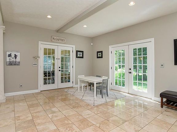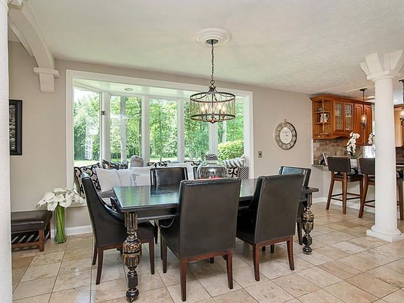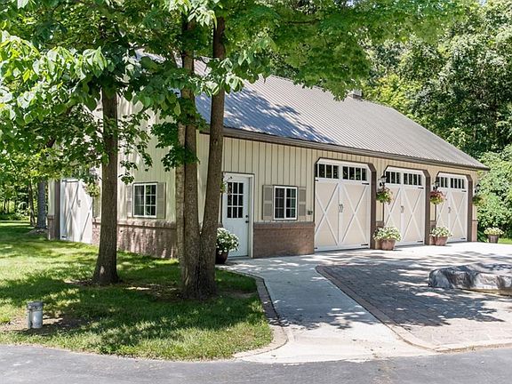 Private wooded retreat on 5 acres! Wonderful open fl plan with custom flooring and raised ceilings in the great rm that soars to the 3rd level. Kitchen has Cherry cabs, Quartz blacksplash, granite countertops and travertine floors. Den/Lib w/ built-in cabs and new hardwood floors. Elegant master suite w/ walk-in closet, whirlpool, and separate shower. 3 car attached finished garage w/ walk-up attic. 4 car detached garage/ workshop w/ another walk-up attic. Beautiful views from every window!