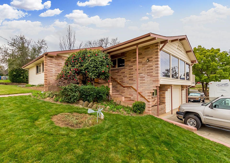 Eye catching custom built home with character. Beautiful hardwood floors and updated fixtures throughout. Great room floor plan with large view windows and cozy wood stove. Attractive galley style kitchen complete with double ovens. Spacious master suite. Large enclosed patio and additional guest quarters down stairs. Expansive covered patio overlooking the terraced yard and mature landscaping.