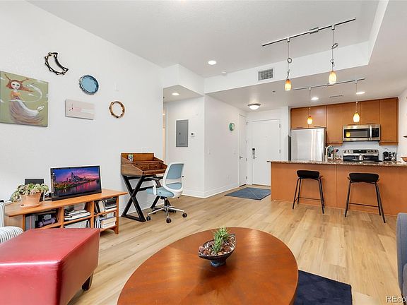 Calling all Broncos fans - your new home awaits at this sleek condo 2 blocks away from Empower Field at Mile High! Enjoy a modern open concept floorplan highlighted by a private patio and a well-equipped kitchen with granite countertops, stainless steel appliances, and counter seating. The floorplan is completed by a sizable bedroom with a large walk-in closet and a full bathroom with another granite countertop. Relish a low-maintenance lifestyle at the welcoming Frontview 40 Condo community that offers fantastic amenities including a fitness center, yoga room, and a must-see rooftop deck framed by spectacular views of downtown, Mile High, Elitch Gardens, and the Front Range. As an added bonus, the unit comes with in-unit laundry, a reserved parking space, and a storage unit. Unbeatable location, this gem is in the heart of lively Jefferson Park and only blocks away from Jefferson Park, Gates Crescent Park, miles of trails, breweries, restaurants, and much more for you to explore.