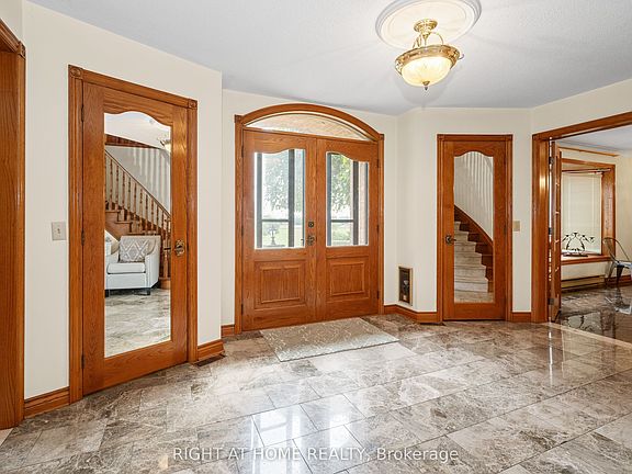 A Country Escape with Endless Possibilities. Discover your own private retreat on this extraordinary 25-acre estate, perfectly suited for those seeking a second home, hobby farm, or a tranquil weekend getaway. Tucked away behind a 575-foot private driveway lined with landscaped greenery, this property immediately sets a tone of privacy and exclusivity. The 4,100+ sq. ft. custom residence combines timeless craftsmanship with modern comfort. Inside, spacious principal rooms and four upstairs bedrooms provide plenty of room for family and guests, while the finished basement with in-law suite offers flexibility for extended stays. Signature details such as a Marley clay tile roof, copper window awnings, custom millwork, and a 12-seat bar reflect quality and character throughout. For hobby farm enthusiasts, the grounds are a dream: an 11-year-old, two-storey 36' x 50' barn with concrete floors and drive-through doors is ideal for animals, equipment, or workshop space. A greenhouse with fig trees, a delightful chicken coop, and expansive gardens invite opportunities for farm-to-table living. Outdoor leisure is just as abundant, with a concrete pergola pad for gatherings, three stocked ponds, serene walking trails, and 11 acres of natural forest to explore. Whether you're envisioning a family retreat, a working hobby farm, or a place to recharge surrounded by nature, this estate offers the rare combination of seclusion, charm, and practicality all within reach of urban conveniences. This amazing home or recreational property is only a 10 minute drive from the beautiful Crystal Beach and 5 minutes to downtown Fort Erie.