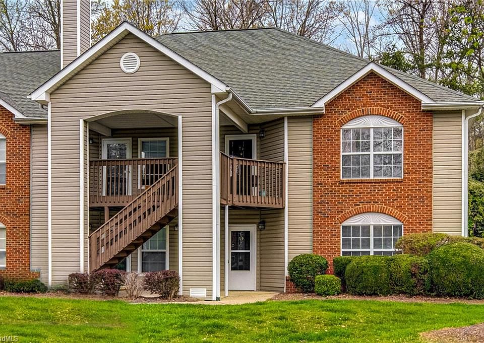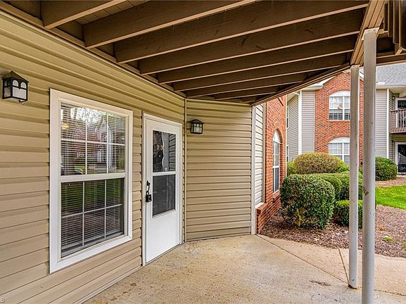 MULTIPLE OFFERS! ALL OFFERS MUST BE SUBMITTED BY SUNDAY, 4/9 AT 5PM. Welcome home to this move-in-ready lower level condo with neat and neutral paint throughout! Incredible floor plan that allows for easy flow between living areas. Tile floors in kitchen and baths. Gleaming laminate in living/dining areas, hallway & primary bedroom. Primary bath has nice walk in shower! Kitchen refrigerator, washer & dryer remain! Walk in closets in both bedrooms. Beautiful covered patio overlooks wooded area. Serene place yet minutes away from shopping and dining! 10 minutes from High Point University! SEE AGENT ONLY REMARKS.