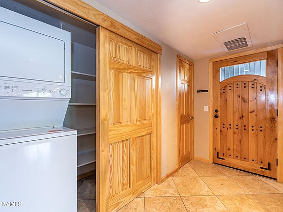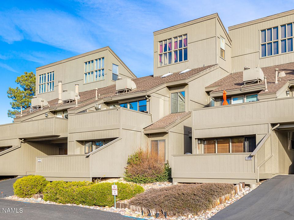 Totally Updated Condo Unit! This lofted 1 bedroom condo feels very open and spacious. There are gorgeous views of Mount Elden from the primary bed room. Front door is custom Pine/Alder. Living room has gorgeous tongue and groove wood ceiling to compliment the cozy wood burning fire place and large dining space. Kitchen has been updated with solid surface countertop and Breakfast Bar countertop serve out, cooktop, and pine/alder cabinets. Tile wrap Bath suite with oversized tub and wood accent compliment. Deck area to enjoy the great summers. Enjoy access to Bear Paw Activity Center and Continental Country Club with pool, gym, and discounts for golf. This is a great opportunity to own a condo that has so much to offer! Hiking and biking trails close by. Stacked W/D.