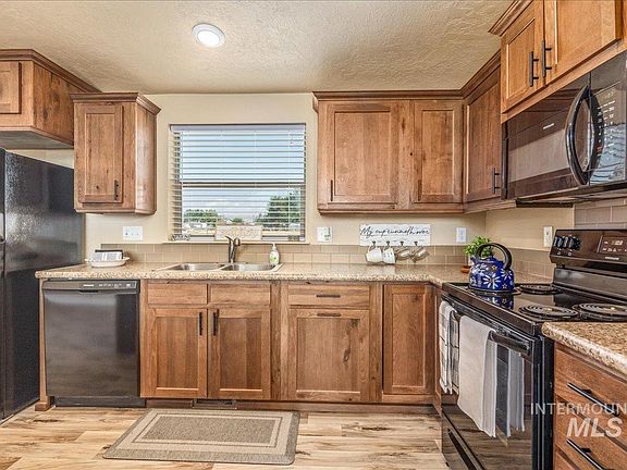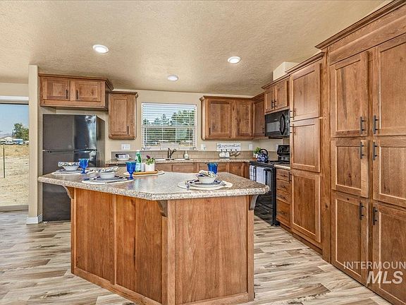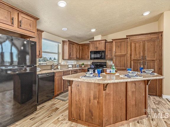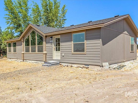 Charming acreage property, built in 2023. A single-level manufactured home (The Pinehurst 2502) by United Family Homes set on a permanent foundation on a 1 1/4-acre lot in Duffy Acres with opportunities. It qualifies for nearly all loan types & has been declared real property with Elmore County. A spacious open floor plan with cathedral ceilings & picture windows showcasing breathtaking sunsets awaits. Featuring a large island with ample storage, room for 4 barstools, dining area, & a floor-to-ceiling slider door leading to the backyard. Large “hidden” pantry provides extra storage. The primary bedroom offers a generous ensuite with a 3/4 bathroom and direct access to laundry room. The split bedroom design includes two additional bedrooms & a full bathroom with a large tub. The laundry room also has space for additional storage. Enjoy the serenity of country living with no HOA fees, a private well (400’+ deep), & a septic system installed in 2023. Located near exit 95 off I-84, close to shops & restaurants.