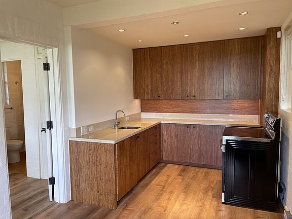 This 400 Sq. Ft., 1 bedroom, 1 bathroom cottage is located beneath a garage on a cool, green estate. The unit has been updated inside with beautiful wood cabinetry, quartz countertops, fresh paint, new laminate flooring, new lighting/ceiling fans. The kitchen is equipped with a new compact 4.8 cu.ft refrigerator and 2 cu. ft. freezer as well as a small under counter refrigerator/freezer. You will also enjoy a new stainless steel electric range, a new stainless steel 9.8 cu. ft. refrigerator, and combo washer/dryer. There are ceiling fans included in each room for your comfort. The 100 sq ft deck stretches along 2 sides and the view is magnificent. This cottage is located on an amazing estate on the Pacific Heights hillside, just minutes to downtown. Ample parking available on the street in front of the house. Entrance from the street is through a secured gate and down a spiral staircase. Electricity, water, sewer, and internet are included in the rent. You will want to experience the space, views, and tranquility for yourself. Call Matt to see it today. Available June 1, 2025. One cat allowed. Sorry, no dogs. The security deposit is equal to one month's rent. Application Fee: $45. No Smoking in or within 20 feet of the property.