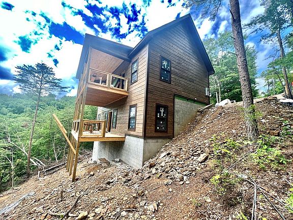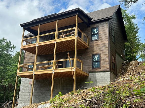 Almost completed 3 bedroom cabin (expected completion of August 15th). As the photos show, this new construction cabin has been built with attention to detail and quality workmanship. The floor-plan maximizes sleeping capacity with 3 bedrooms and a loft upstairs, and also includes a game room for guests to enjoy downstairs. The large wooded lot provides a secluded setting and includes views from the 2 decks on the back of the cabin. The cabin will be fully furnished turn-key, ready to start producing income in August. A few of the photos include a similar cabin built by the same contractor that show the build closer to the finished product.