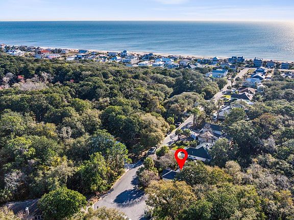 A BLOCK FROM THE BEACH WITH EGAN'S GREENWAY FOR YOUR BACKYARD! Located on a quiet Cul-de-Sac, so no through traffic and NO HOA Fees! PERFECT PRIMARY OR SECONDARY HOME. Landscaping is Xeriscape, so NO GRASS TO CUT! Home features a split floor plan with generously sized bedrooms and charming kitchen open to the great room with real wood-burning fireplace framed by custom shelving and cabinetry. Soaring cathedral ceiling in the great room adds to this home's many charms. Engineered hardwood floors throughout except for the bathrooms and the utility room, which are tile. Covered rear screened-in porch (09X26) affords owners a protected place from which to relax and to listen to the sounds of the not-so-distant surf. Room for a garden on this larger-than-most lot or plenty of gardening opportunities for those with a green thumb. Roof replaced in 2022. HVAC last replaced in 2016. New exterior paint in 2022. Oven/range replaced in 2024, updated plumbing fixtures in 2024. Jacuzzi in back conveys in sale. Come check out this CHARMER...oh so close to the beach and with complete privacy for life in the rear!