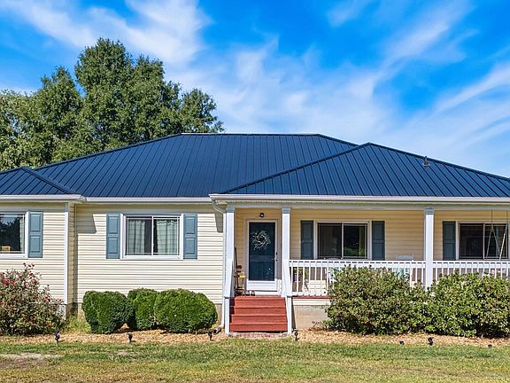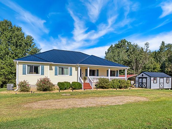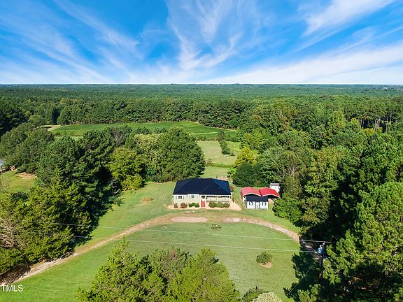 Welcome to this country retreat! This well maintained, updated Ranch home has 3 bedrooms/2 bathrooms and a beautiful 3 acre property with large cleared yard as well as wooded areas on both sides. Country living, located about 15 minutes/12 miles to downtown Louisburg with shopping, restaurants & more! No HOA or restrictions. This home has had one owner who has made many upgrades and improvements. Eat-in Kitchen updated with new: quartz countertops, Luxury Vinyl Plank (LVP) floors, oak cabinets painted white, and has bay window which shows natural light. Refrigerator conveys. Large family room has vaulted ceilings. Dining room area includes a new wood burning stove! Original oak hardwoods in Family Room & Den. Spacious primary bedroom suite with sitting area has sliding glass doors for private access to back porch. Primary bath upgraded with new walk-in shower, Venetian marble countertop, and LVP floors. Hallway bath has new quartz countertop and ceramic tile. Laundry room with electric dryer and washer hookup is off the kitchen; washer & dryer do not convey. Other major interior upgrades done in 2022-2024: New HVAC system (heat pump and central forced air), all interior rooms painted, and new ceiling fans in all 3 bedrooms. Exterior Upgrades - All New: metal roof, vinyl siding, vapor barrier encapsulation in crawl space, vents that automatically open & close depending upon the weather & season, double pane windows, and 2 sets of sliding glass doors installed. Decks painted and stained on front and back covered porches. Large front porch and rear covered porch both could easily be screened in. Front covered porch with swing (that conveys) has beautiful east views of the sunrise, and back covered porch has amazing sunset views. Private 3-acre property with lots of space to build a garage, pool, horse barn, or anything else! Bring your horse. Wooded areas can be cleared to make additional room. Insulated Shed/workshop has electricity with ceiling lights, 50 amps of power, and 3 windows (one with window AC); shed makes great workshop or studio. 2 carports for plenty of room to store your boat, RV, or other vehicles. Three outdoor solar spotlights and string lights provide excellent lighting at night. Two floodlights on back porch wired to side of house. All these lights convey. ''Ring Doorbell'' on front door conveys. Beautiful established trees including willow oak, river birch, Japanese maple, 2 blueberry bushes, sage, and wild purple grapes. Small pond in back yard illuminated by solar lights holds frogs and can hold fish. Bluebird box has repeat blue birds each year. Hummingbirds love the red trumpet vine. Come make this beautiful property your home!