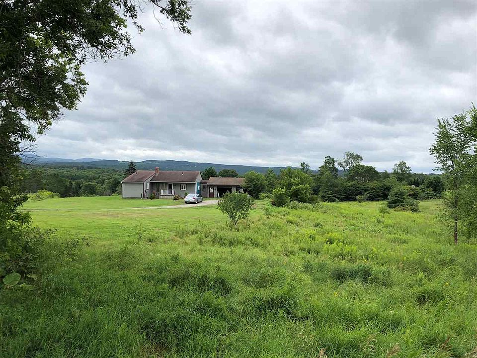 East Montpelier ranch with 2 car garage and 7.6 acre lot with distant mountain views. Built in 1978 so modern electric, plumbing, and new high efficiency heat pump supplies heat and AC. Also, has wood stove hook-up and hearth. Leased Solar panels supply electric. Panoramic views to the east and south with great sun and light. Small green house/sunroom on south side. Rolling open meadows with apple trees, berry bushes, and brook at edge of property. $2,000 credit from seller toward new flooring.