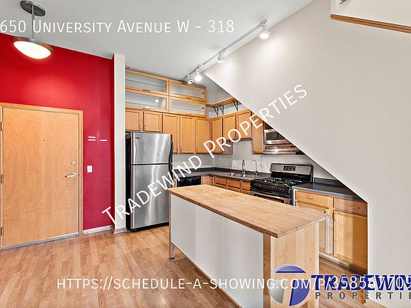 Experience contemporary living in this stunning two-level loft, ideally located in the heart of St. Anthony Park. Enjoy a completely walkable neighborhood with direct access to the light rail, plus two underground heated parking spaces (spots #27 and #40) included in rent. The bright and open main level features a spacious bedroom with a walk-in closet and full bath, an in-unit full-size front-loading washer and dryer, and a stylish open-concept living area and kitchen. Upstairs, the expansive loft offers a versatile flex space that can be used as a home office, additional living room, or second bedroomperfect for a roommate setup. The upper level also includes a bath and access to a private balcony. This secured building provides peace of mind and convenience, with a private storage cage located directly in front of parking spot #27. Enjoy the perfect blend of comfort, convenience, and modern design in one of the Twin Cities' most desirable neighborhoods. (Front entrance is located near pay station parking lot). Available now with 12, 18, or 24 month lease term. Tenant pays gas and electric. No pets allowed. Application fee: $45/ adult non-refundable. Renters insurance required. Information deemed reliable but not guaranteed. Section 8 not approved.