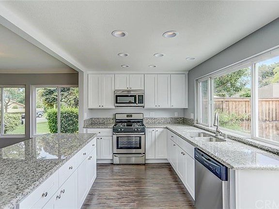 End unit townhome in the desirable Eastbluff neighborhood. Approximately 1633 square feet, 4 bedrooms, and 2.5 baths. Open floor plan with newly remodeled kitchen and bathrooms, dual pane windows, recessed lighting, and wood flooring. A private courtyard with a grill is ideal for entertaining. Detached 2-car garage. Eastbluff has beautiful greenbelts and parks, tennis courts, pools, access to back bay trails and is close proximity to world class shopping, beaches, and schools.