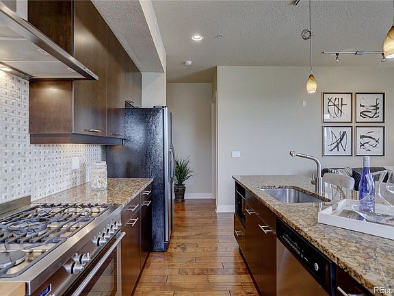 This stunning 2 bed /2 bath condo is well located in trendy Jefferson Park. Walk to nearby restaurants and the park. Experience downtown Denver's rich variety of culture, art, sports, restaurants and night life...just minutes away. Enjoy expansive views of downtown, the mountains, the Pepsi Center, Mile High Stadium and more from the large roof top terrace. Perfect for entertaining larger groups or watching the fireworks during the holidays. This fabulous kitchen boasts stainless steel appliances... including a gas CDA Range Cooker with oversized oven and wok burner... slab granite counters, endless espresso cabinets and a large island with breakfast bar. The spacious master suite boasts a dual vanity with vessel sinks, a tower cabinet, a Euro shower, granite counters and a large walk-in closet. Create your own private office space in this cozy nook...perfect for working from home. There is a generous amount of storage within the laundry room, large closets and storage unit. Secure underground parking garage with deeded tandem parking space for two cars and storage unit just in front of parking space. Staying fit will be a snap utilizing the building's yoga studio and fitness room. If you are ready for the ultimate downtown living experience...this amazing condo can be yours!