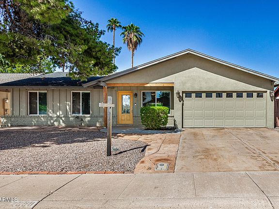Completely remodeled in 2018—with a brand-new A/C in 2024—this soft-contemporary Chandler home blends clean lines with warm, livable finishes. The renovation introduced energy-efficient dual-pane windows, smooth interior plaster walls, upgraded cabinetry topped with quartz countertops, and refreshed interior doors, woodwork, and hardware for a cohesive, designer feel throughout. Light-filled living and dining areas flow naturally toward the kitchen, creating an easy everyday rhythm and an ideal setting for entertaining. Thoughtful updates extend to the baths and storage, and the home's neutral palette makes it truly move-in ready on day one. Outside, enjoy true Arizona indoor/outdoor living: an extended covered patio overlooks a sparkling pool.