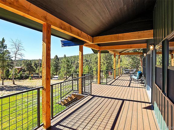 Welcome to this beautiful property with 1.2 acres located in the Richmond Hill area of Conifer, CO. This newly built Mountain Modern home offers main level living with 2 bedrooms and a loft that could easily be converted into a third bedroom, 2 full bathrooms, and 1 half bathroom, with a total of 1796 sq ft of living space in the main house and an additional 576 sq ft partially finished over the garage for a total of 2368 sq ft. As you enter the home, you'll be greeted by the large great room with vaulted ceilings, big windows and a High Efficiency Quadra Fire wood stove. It's the perfect spot to relax and unwind after a long day. The kitchen is a chef's dream, featuring a wealth of natural light, commercial duel fuel gas range and convection oven, stainless steel appliances, soapstone countertops and custom cabinets. The primary bedroom features plenty of natural light and a beautiful 5 piece bath. Upstairs you will find a large bedroom, full bath and a spacious loft that could be converted into a third bedroom. Luxury abounds in this home with stained concrete flooring, in floor radiant heat throughout, whole house water filtration system (Aquasana), Premium Milgard Ultra fiberglass windows and doors, custom stained knotty alder doors and trim, Low/No maintenance metal roof and siding and custom metal railings in & outside. Outside, you'll find a covered porch with wrap around Trex decking, where you can enjoy the beautiful mountain views. Additionally, for those Firewise folks, this property has been fire mitigated and the home has an interior fire sprinkler system. The 2-car garage fully insulated and prepped to install a EV power station if needed and above the garage is a finished living area that is ready for you to pick you paint color and flooring. This home was designed by the same architect that also designed the HGTV Dream Home in Morrison, Colorado. With its stunning views and convenient location, this property is truly a gem in the Richmond Hill area.
