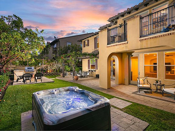 Moments from Dana Point Harbor in the gated community of Pacifica San Juan, this stunning 5-bedroom home blends contemporary comforts and an ideal location to enrich your lifestyle. Curb appeal abounds with a 3-car garage and front elevation enhanced by red brick siding, a classic tiled roof and extensive leased solar. On the main floor, enjoy one bedroom suite, a formal living room swimming in light, and an open-concept greatroom ideal for entertaining. The fireplace family room effortlessly transitions to eat-in dining and the gourmet kitchen, displaying rich natural cabinets and granite countertops, a large center island, and stainless appliances including an oversized fridge, double ovens and commercial-grade KitchenAid gas range and hood. Continue entertaining in the yard with a shaded hardscape patio, hot tub, and built-in grill station and firepit, all secluded by lush landscaping and privacy walls. Wrought-iron stairs lead up to the incredible master suite with a private balcony, walk-in closet, dual vanities, soaking tub and gorgeous step-in shower. Three secondary bedrooms are conveniently placed near upstairs laundry, and each has direct bathroom access with one fully en-suite, two sharing a luxe bath with glass enclosure and steam machine, and a huge bonus dressing-room style closet. More amenities include whole-home water filtration, built-in surround sound and security system. All within minutes of freeways, beaches, local hotspots and more! Dont miss this fabulous home, call today for a tour!