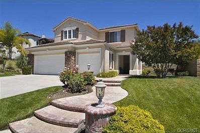 Located in Prestigious Stevenson Ranch this move-in ready home features 4 bedroom plus an office/bedroom and 2.5 baths in approximately 2,517 square feet. Granite kitchen counters and backsplash, stainless appliances highlight a gorgeous kitchen that opens into a beautiful family room with fireplace and built-ins. Large living and formal dining are also featured. Large master bedroom and bath, 3 additional bedrooms and a large office with wood floors make this home a must see. 3 car direct access garage!!!!!!! Stevenson Ranch is located within minutes of the I-5 freeway, multiple championship golf courses, great shopping and dining and of course the world famous Six Flags Magic Mountain and Hurricane Harbor Water Park. A great community with award winning schools!!!