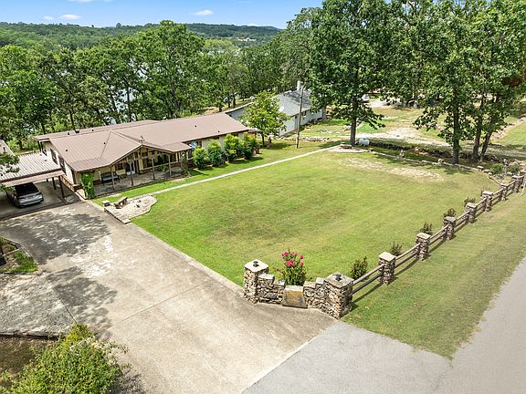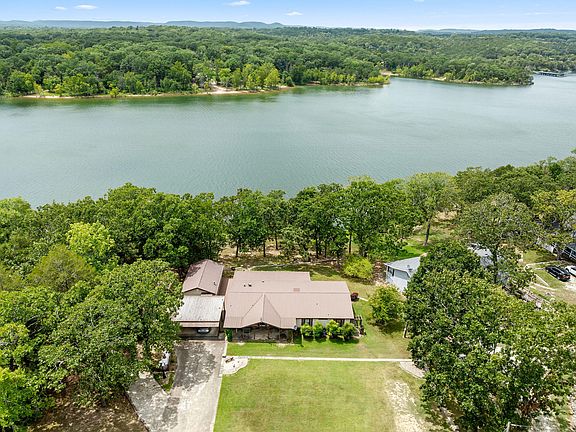 Amazing lakefront home that is absolutely as neat as they come! Home consists of 3 beds 2 baths, living room, large den, additional sunroom and multiple outdoor covered living spaces. Kitchen is nicely appointed with granite bar and and convenient dining area. Laundry area off kitchen has easy access to back covered deck and walkway to covered carport and large workshop. The views inside and outside this home are tremendous. Lot is landscaped and nicely appointed. 10 x 24 boat slip, available for additional $$, is conveniently located just a short golf cart ride away. This is the complete lake package. Many personal items may be purchased as needed.Home is a doublewide, permanently affixed with additional sunroom, multiple covered porches and decks added.