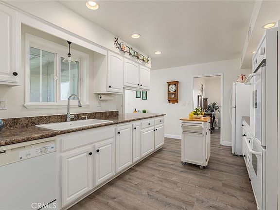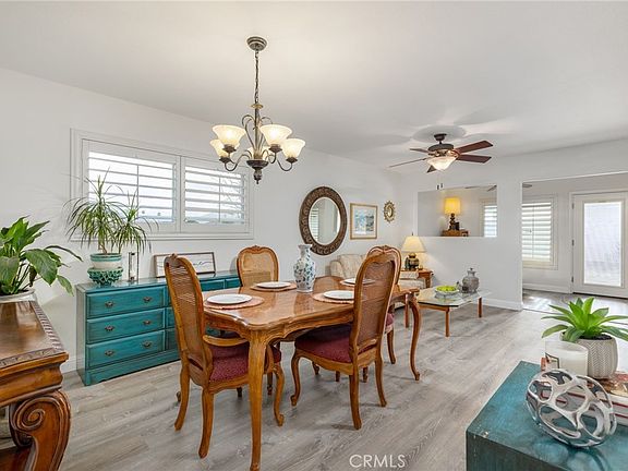 55+ Upgraded Spacious Sun City Home. This 2-bedroom, 2-bathroom residence conveniently located just minutes away from the Cherry Hills Community Center, dining, shopping and medical facilities not to mention seamless freeway access. This home has been thoughtfully upgraded with modern finishes including vinyl wood plank flooring, paint, ceiling fans, recessed lighting, farm sink, dual pane vinyl windows, plantation shutters, French doors and more. A generous open floorplan creates a spacious atmosphere with an over-sized living/dining area, and a permitted professionally renovated enclosed sunroom which is ideal for a home office. Additionally, a charming front entry courtyard enhances the appeal of this residence. The two-car garage accommodates both cars and golf carts. Monthly HOA dues cover landscaping, water, and trash services. With low taxes and no Mello Roos, this home is truly a must see!