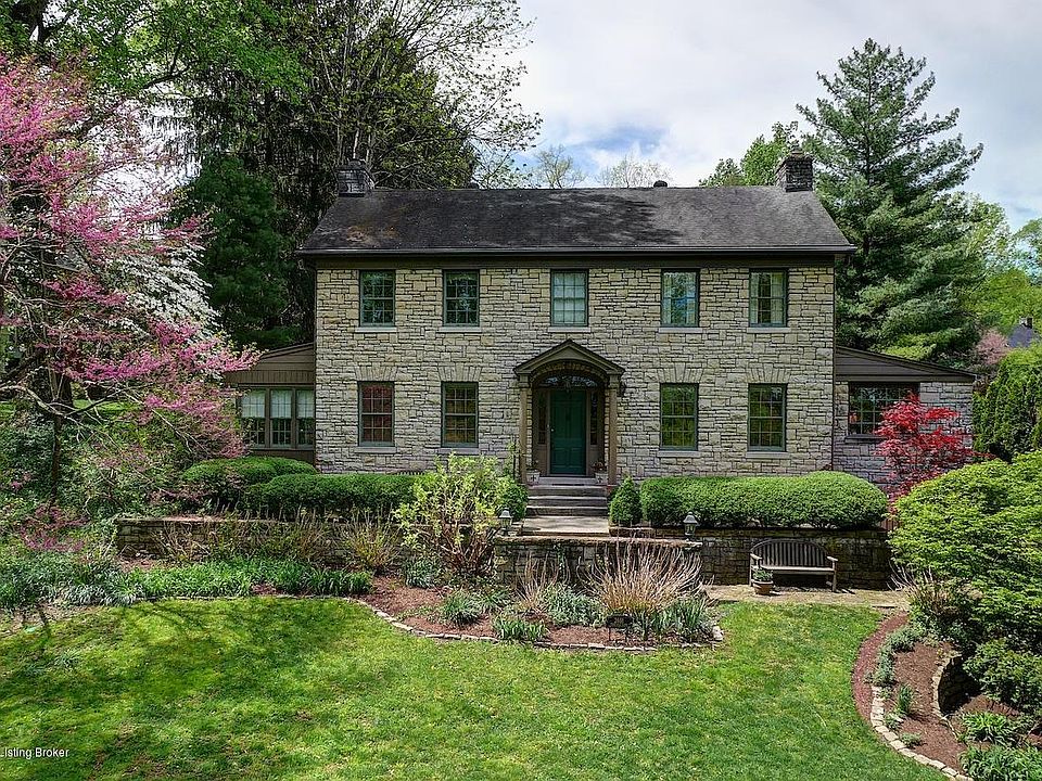 Very special property in the Cherokee Triangle on a gorgeous manicured lot with sweeping views of Cherokee Park and fabulous outdoor living and entertaining spaces! This handsome four bedroom, four and one-half bath stone home has been beautifully maintained and updated throughout. Highlights of the first floor include a large living room with gas fireplace, cozy office/den area, beautiful formal dining room, first floor bedroom/den with en suite bath and light-filled kitchen/breakfast room with gas Jenn-Aire range, Jenn-Aire dishwasher and GE Café refrigerator. The second floor includes a spacious master suite with a fireplace and an updated attached bathroom. There are two additional bedrooms and a "Jack and Jill" bath on this level. The comfortable lower level is set up as a family/rec room and includes built-in speakers as well as a built-in wine refrigerator and storage. There is ample additional storage in the unfinished portion of the lower level including a cedar storage closet. The front of the home has a nice porch and seating areas overlooking a lush lawn and Dogwood and Redbud trees. The rear patio is a delight with built-in planters and stone accents. There's plenty of room for lounging, dining and grilling out.