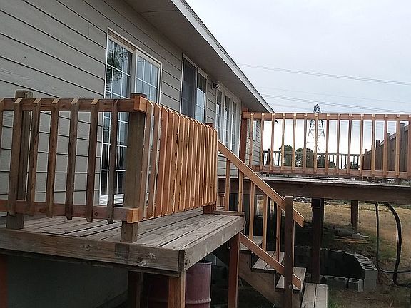Ranch style with daylight basement with new egress windows for bedrooms. Large wooden deck. Attached garage, sets on .87 acres with SVID water with new underground automated sprinklers. Seller will consider a real estate contract with interest rate at 4%.