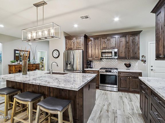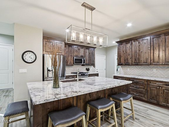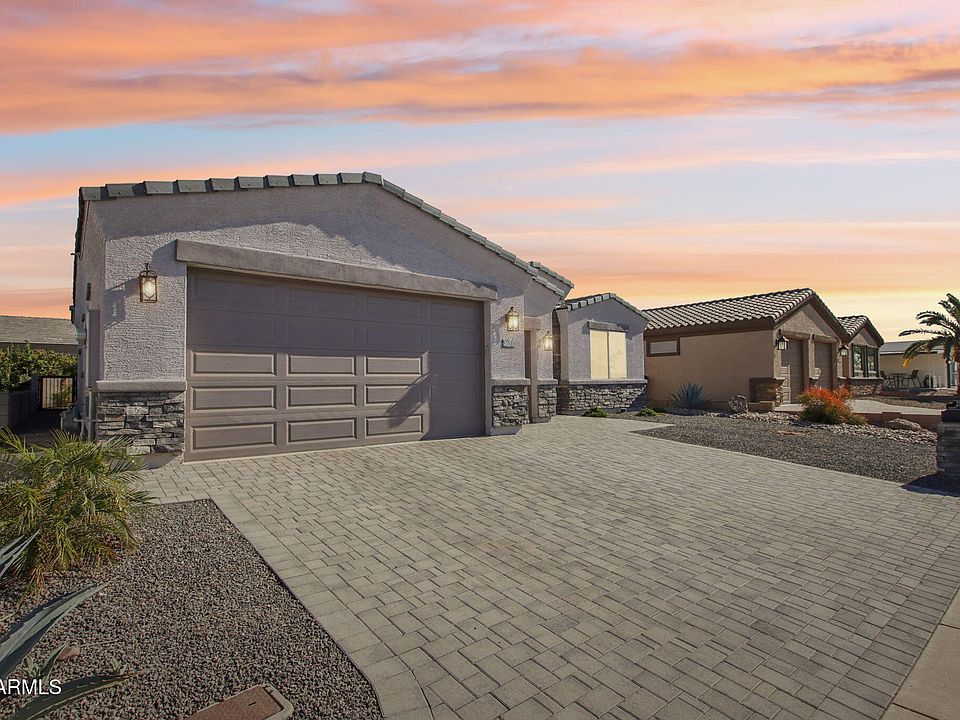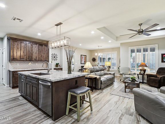 Welcome home to your beautiful modern masterpiece in Apache Wells! Show off this desirable open floor plan, perfect whether you're entertaining or just having a relaxing evening. Impress friends and family alike when they see your designer kitchen, complete with beautiful granite countertops, herringbone tile backsplash, and stainless steel appliances. The designer touches continue as you make your way into the spacious primary retreat. From tray ceilings to walk-in showers featuring floor to ceiling tile, this home is sure to awe and inspire. The enclosed, low maintenance backyard offers an extended patio, providing plenty of room under the shade for friends or pets! Looking for something to do? Apache Wells offers a vibrant variety of daily activies as well as all new pickleball courts, a renovated fitness center, bocce ball, and heated pool and spa. Hurry over to see this one for yourself today!