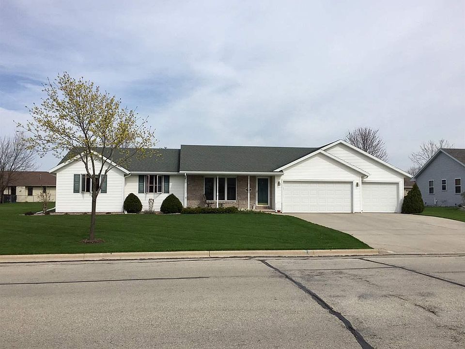 1/4+ AC Landscaped Setting! Well maintained Bellevue ranch w/3+ car attached garage. Covered porch opens to sun drenched living room w/cozy corner fireplace! Applianced kitchen features plenty of cabinets, snack counter & dinette w/new patio door to deck overlooking the beautifully landscaped grounds. Convenient main level laundry/half bath. Master w/walk-in closet & adjacent full bath. Updated water heater & storage shed. Full lower level. 3+ car attached garage. Desired Bellevue location minutes from the Green Bay Golf Club & highway access.