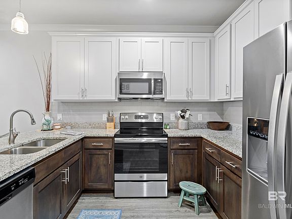 Welcome to Victoria Place, a gated community in Foley, offering comfort, convenience, and a low-maintenance lifestyle. This meticulously maintained 3 bedroom, 2 bathroom condo features a split-bedroom floor plan and ready for it's new owners. Located near the Foley Beach Express, Tanger, Foley Sports Complex, OWA and and the beautiful Gulf Coast beaches, this condo offers easy access to shopping, dining, entertainment and more. YOU DON'T WANT TO MISS THIS ONE!Upon entering, you’ll immediately notice the warmth and elegance of luxury vinyl plank flooring, which enhances both style and durability throughout the home. As you make your way down the hallway, you’ll discover two spacious bedrooms and a guest bathroom, thoughtfully positioned near the convenient laundry room. Beyond the entryway, the heart of the home awaits—a bright and open main living area where modern design meets timeless charm. The inviting kitchen boasts granite countertops, stainless steel appliances, and stylish two-toned cabinetry. Soaring 9-foot ceilings create an airy ambiance, while sunlight streams through hurricane-rated windows, filling the space with natural light and providing storm protection. Tucked off the living area, the private master suite offers a serene retreat featuring an ensuite bath and a walk-in closet, providing both comfort and convenience. Designed with accessibility in mind, the home includes 32-inch wide doorways to each bedroom. This condo comes complete with all appliances, including a full-size washer and dryer including a dedicated 1-car garage plus 2 designated parking spaces. Built with thoughtful details and a low-maintenance lifestyle, Victoria Place offers a well-managed Condominium Owners Association that covers landscaping, pest control, garbage pick-up, and more. Whether you’re looking for a primary residence, vacation getaway, or investment property with strong rental potential, this home checks all the boxes. Schedule your private Showing! Buyer Buyer to v
