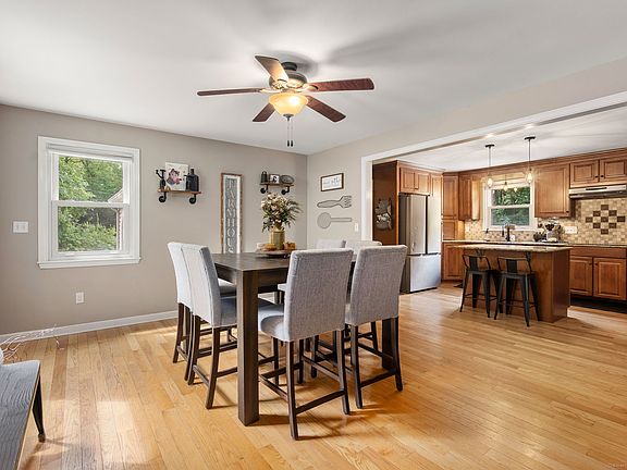 Set on a picturesque, nearly 2-acre lot in the desirable Upper Eastside of town, this charming 3-bedroom, 1.5-bath Dutch Colonial offers the perfect balance of privacy and convenience. The fenced backyard has been recently leveled, providing an ideal space for play, entertaining, or relaxing, while the rest of the property is framed by peaceful, tree-lined surroundings. Inside, the home features 1,792 square feet of living space plus additional finished area in the walk-out basement, including a bonus bedroom. The kitchen features granite countertops, a center island, and a breakfast bar that opens to a warm and inviting main living area. Hardwood and carpet flooring throughout add both comfort and character. Spend cozy winter nights by the fireplace or enjoy the tranquil views from the sunroom, which opens through sliding doors to spacious upper and lower decks-perfect for entertaining or unwinding. The bathrooms include thoughtful updates, highlighted by a new tub/shower, while other improvements include a new garage door on the two-car garage. Conveniently located near Greenwoods and Eastwoods Country Clubs, Brodie Park, and Burr Pond, with easy access to Routes 8 and 183, this home combines natural beauty with commuter convenience. A must-see in a peaceful setting-schedule your showing today! Property is equipped with audio and video surveillance devices that may be active during showings and open houses. Your conversations and actions may be recorded.