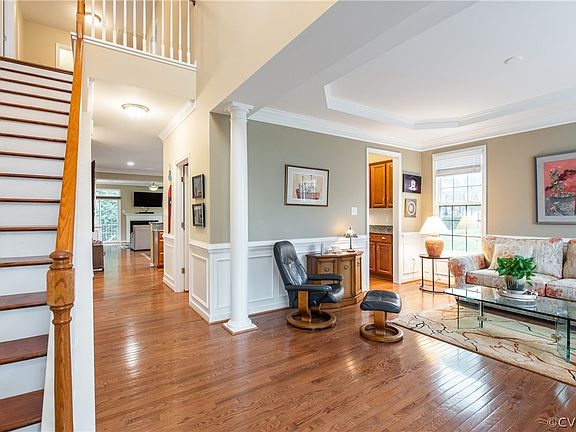 Tired of lawn care, outside maintenance including landscaping, house painting, gutter cleaning, irrigation, & replacing your roof? This 1st floor bedroom gem in Church Road Commons is for you! This home sits on a beautifully landscaped lot with a patio, just minutes away from all the amenities Short Pump has to offer. Arriving at the property, you will notice the 2 car attached garage, private driveway, and overflow parking for guests nearby! Inside this gem, you will find an impressive 2 story foyer & open floor plan with a host of upgrades, including custom closets. The home flows easily from the large kitchen furnished with shelf organizers, stainless steel appliances, butler’s pantry, granite countertops and island that look out to bright and spacious dining and family rooms. Primary bedroom is located on the first floor with French doors leading into the large bedroom, with a gorgeous trey ceiling, large walk-in closet, grand tiled shower & jetted tub! Upstairs you will find 2 very spacious bedrooms, a full bathroom with dual vanity and linen closet, and a large bonus room. This home is maintenance-free and is an Earthcraft certified green home that boasts low utility costs!