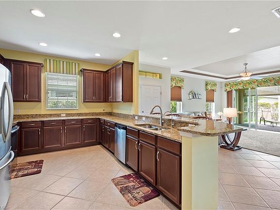 Carefree living at it's finest! This home has a hurricane roll down shutter feature on the lanai and hurricane shutters installed on all the windows and doors. You are basically getting them for "free" as the price does not reflect this highly sought after upgrade. The home is fabulously kept with so many lovely features starting with the wide open floor plan with pocket sliders leading to the extended lanai. There is tile on the diagonal throughout the entire house except for the bedrooms. The kitchen has a breakfast bar, granite countertops, stainless steel appliances, 42 inch upper cabinets and a large pantry. The living room, master bedroom, dining room and den all have tray ceilings with crown molding. The master bathroom features dual sinks, a large walk in shower, separate water closet and leads to a huge walk in closet. The spacious den/office has exceptional natural lighting. Bedroom 2 has a pocket door which leads to an ensuite bathroom which has dual sinks and large walk in shower. Bedroom 3 has another large walk in closest. The laundry room has a utilitiy sink and large capacity washer/dryer with a very large closest for storage. Hurry as this home is priced to sell!