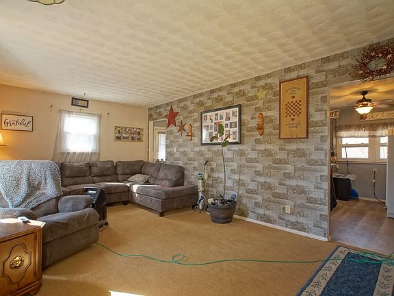 3 bedroom, 2 bath, 1232 sq. ft. home with a full unfinished walkout basement on 7.41 acres with a 40' x 28' and 32' x 28' outbuildings. This mini farm property has some fenced pasture lots with 1 building set up for livestock, 1 building for a garage/shop/storage, a flowing stream running through the parcel, an extra 4" well, a large yard with the house setting back approx. 400' off SR 114. The house could use some finishing TLC. Some of the "NEWS" include : 2018- Septic system, metal roof; 2021- Power vent gas hot water heater; 2022- Hi efficiency GFA furnace and lower level slider door. Lower level has been partially finished with 2 possible bedrooms, family room, laundry room and an unfinished utility/storage room. No lower level square footage has been marked as finished. Washer and electric dryer and upright freezer are negotiable. Water Softener is a rental unit.