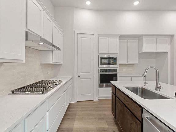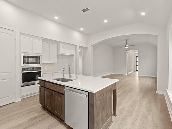 MLS# 33042180 - Built by Highland Homes - Ready Now! ~ Located in Jubilee, first ever Wellness Community in Texas! The Bristol floor plan features 11ft. ceilings and a spacious open layout. The island kitchen has a large single basin sink, quartz counters, 5pc stainless steel appliances, and painted cabinets offering plenty of storage space! Wood look luxury laminate floors included in all main areas. Primary suite sits in the back of the home with tiled garden tub and separate shower, dual sinks and a spacious walk-in closet! This beautiful home offers an oversized outdoor covered patio! SMART HOME PACKAGE, tankless water heater, circadian rhythm lighting, full gutters and full sprinkler system are all included.