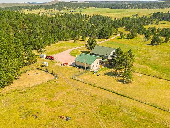 HERE IT IS!! That small ranch property that you have been looking for in the southern Black Hills. 77.72 beautiful acres bordering USFS land on two sides. HUNTER'S PARADISE! Right smack dab in the middle of the best elk hunting in the Black Hills. Other trophy game include both mule deer and whitetail deer, turkeys, coyotes and occasional mountain lions. Custom built insulated concrete home. Detailed attention was given to GREEN construction for ultimate energy efficiency. No details were over looked in the design, layout and construction of this beautiful home. It appears that the owners thought of everything. 3632 square feet of nothing but quality. Main floor master bedroom suite, master bath has Travertine tile, 6' claw footed tub, large shower and his & hers higher counter top hand painted sinks, walk in closets; main floor laundry; 1/2 bath; plus den/office that could be another bedroom; great room with antique wood burning pot bellied stove, and large living/dining room; beautiful 'Chef's kitchen with knotty alder cabinets, cork flooring, hammered copper prep sink in work island, built in wall oven, microwave and elevated dishwasher for ease of loading, self closing drawers, spice organizer and a walk in pantry. Real wooden floors of 3/4" Brazilian Light Cherry and Brazilian Mahogany with 50 year guarantee. Oak wood stairway & hand rails leads to the walk out lower level which has 2 bedrooms; spa bathroom with river rock finished jetted tub and hammered copper sinks.