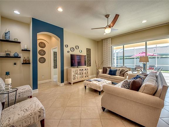Style and sophistication grace the walls of this fabulous Sandoval home. Here you will enjoy an immaculate 3 bedroom plus den plus large loft home offered beautifully decorated & upgraded. Modern greatroom style floor plan that is light and bright & full of Florida sunshine. Kitchen features beautiful raised panel wood cabinets with crown molding, granite counters, large island/breakfast bar, pantry & breakfast nook. Spacious FIRST floor master suite with enormous master closet, master bath enjoys dual sinks & walk in shower. Additional first floor bedroom with its own en suite bathroom plus den & formal dining. Upstairs enjoy another full bath with bedroom & large loft. Perfect room for a second master suite or close it off into another bedroom. Extras: Extended lanai, volume ceilings, 8' doors/sliders & more. Sandoval offers excellent amenities including a fitness center, tennis, pickleball, bocce, basketball, horseshoe, 2 dog parks, walk/jog/bike paths & many other social activities (yoga, board game night, card leagues, golf outings & more) to enjoy! Low HOA's include cable, internet & they handle all the yard work! So you can sit back, relax & enjoy the Sandoval Lifestyle.