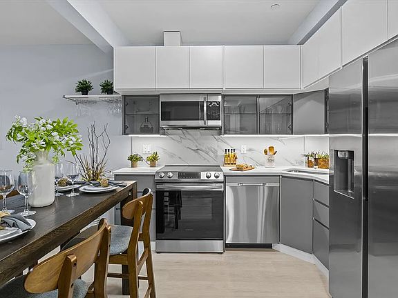 ** SPONSOR INCENTIVE - INQUIRE WITHIN** Enjoy contemporary designer interiors and private outdoor space in this stunning, energy-efficient two-bedroom, two-bathroom home at 2654 East 18th Street, a new-construction condominium in the ideal Sheepshead Bay location. Inside this sun-splashed home, discover tall ceilings with recessed lighting, oversized windows and sliding glass doors. The large open-plan living/dining room opens to a wide balcony, perfect for indoor-outdoor enjoyment. Fall in love with the open gourmet kitchen finished with sleek gray and white cabinetry, quartz counters and stainless-steel Samsung appliances, including an electric range, French door refrigerator, dishwasher and built-in microwave. The serene owner's suite boasts an oversized custom walk-in closet and a modern en suite bathroom featuring floor-to-ceiling large-format tile, a rain shower, two-stage commodes, spacious vanity and medicine cabinet, all trimmed with contemporary chrome fixtures. The secondary bedroom offers excellent closet space and easy access to a well-appointed full guest bathroom with a soaking tub/rain shower. Radiant heat flooring throughout the entire home, central air conditioning, upgraded insulation, sound-attenuating windows, A/V prewiring, ample closet space and in-unit washer-dryer hookups add comfort and convenience to this pristine new Brooklyn home. 2652 East 18th Street offers intercom entry, a common roof deck, top-floor gym, a bike room and on-site garage parking spaces available for purchase. From this wonderful location, you're close to fantastic waterfront outdoor space along Sheepshead Bay, Coney Island, Manhattan Beach and Marine Park. Enjoy great local shopping, dining and nightlife, while B and Q trains, excellent bus service and nearby parkways put the rest of the city within easy reach.