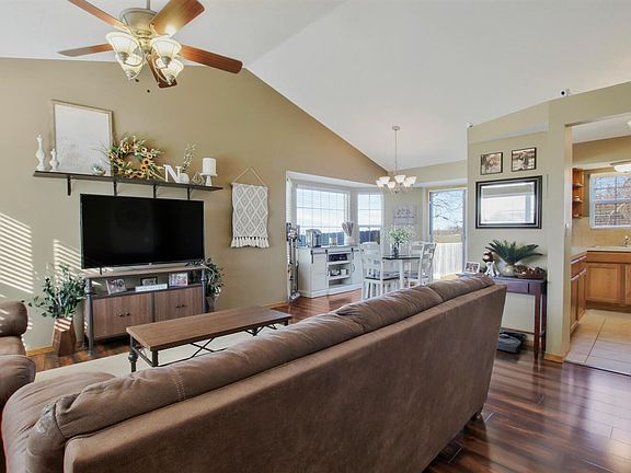 Incredibly cared for home located in a quiet neighborhood in the Valley Center school district with 3 bedrooms, 2 bathrooms, and 2 car garage! The main floor features an open floor plan with vaulted ceilings, beautiful wood laminate floors, an eating bar in the kitchen with all kitchen appliances remaining. The master bedroom features spacious his and her closets. The basement has daylight windows to let in plenty of natural light, a large family room that's perfect for movie nights, and 1 bedroom and bath. The fenced backyard is just the right size and backs up to a tree lined field so there's no need to worry about privacy. The neighborhood has a fishing pond that's stocked with a walking trail nearby. This home is move in ready and won't last long!
